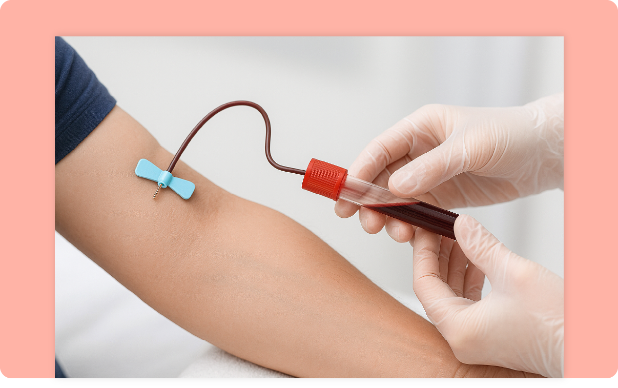 En blodprøve udføres af vores professionelle personale på en af vores samarbejdsklinikker.